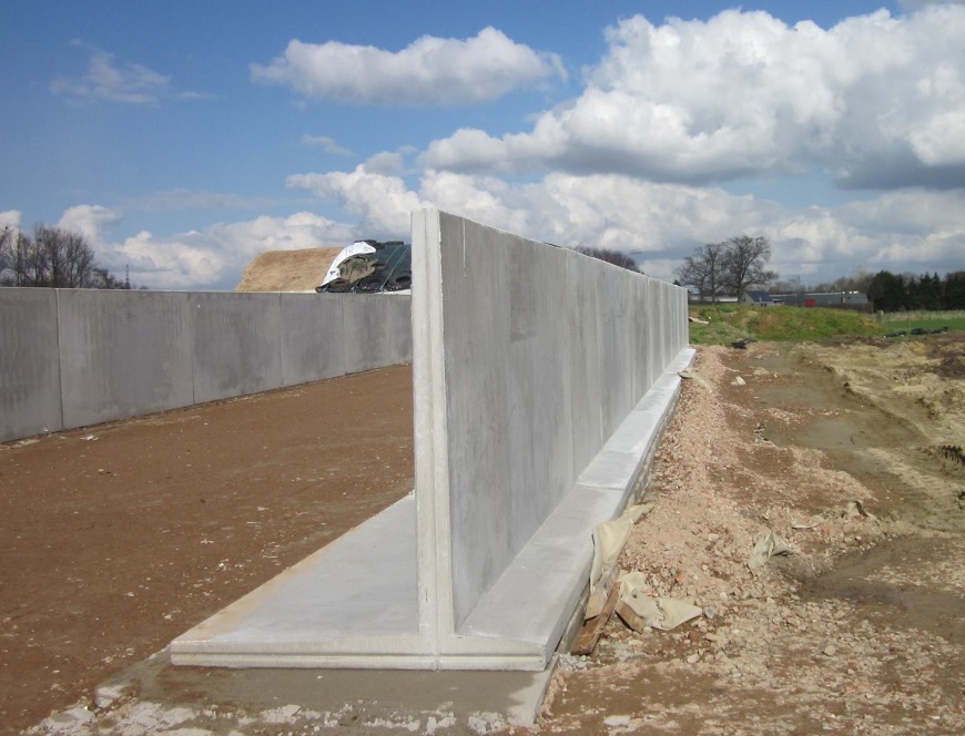 Dit type wand heeft een haakse hoek onder bij de voet. Tevens is de vloer licht hellend geproduceerd zodat er geen kuil en maïssappen in de hoek blijven staan, waardoor de beton niet aangetast wordt. Op deze keerwanden wordt een kwaliteitsgarantie van vijftien jaar gegeven.
